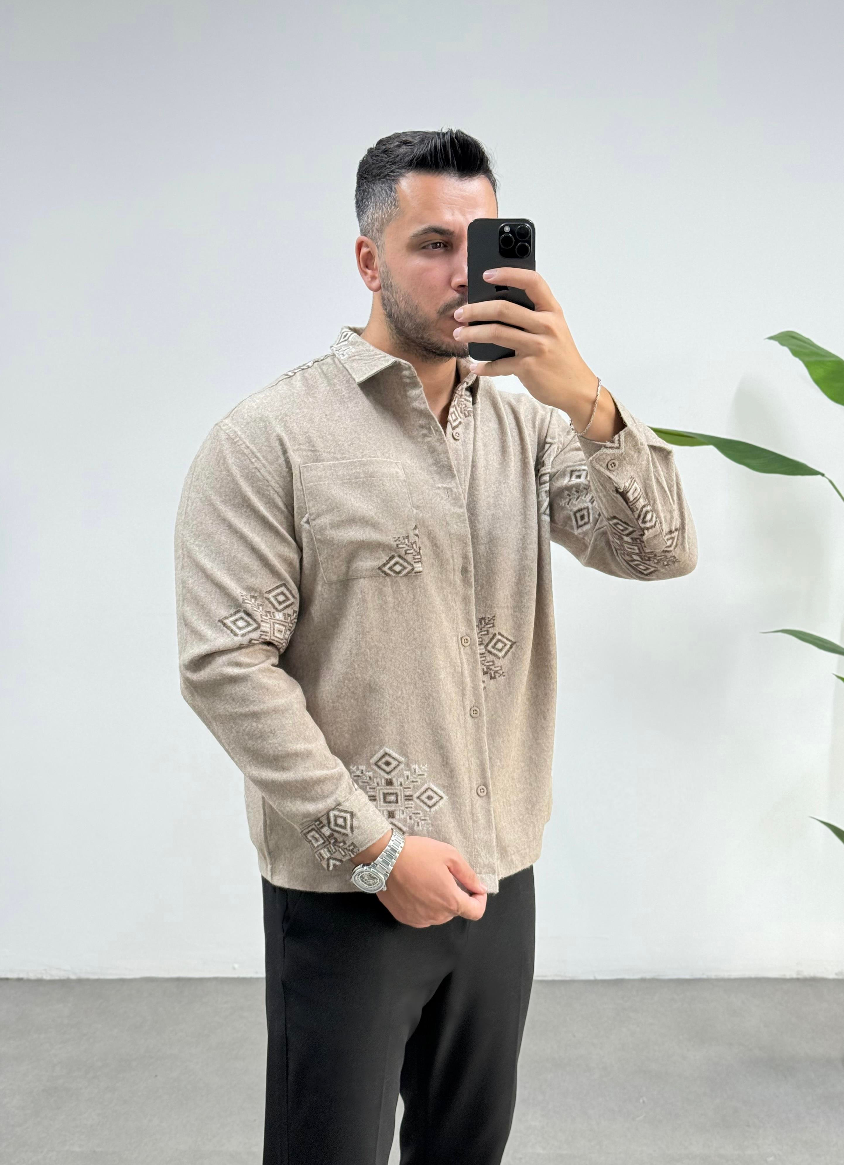 Etnik Kaşmir Bej Oversize Gömlek (3450M)