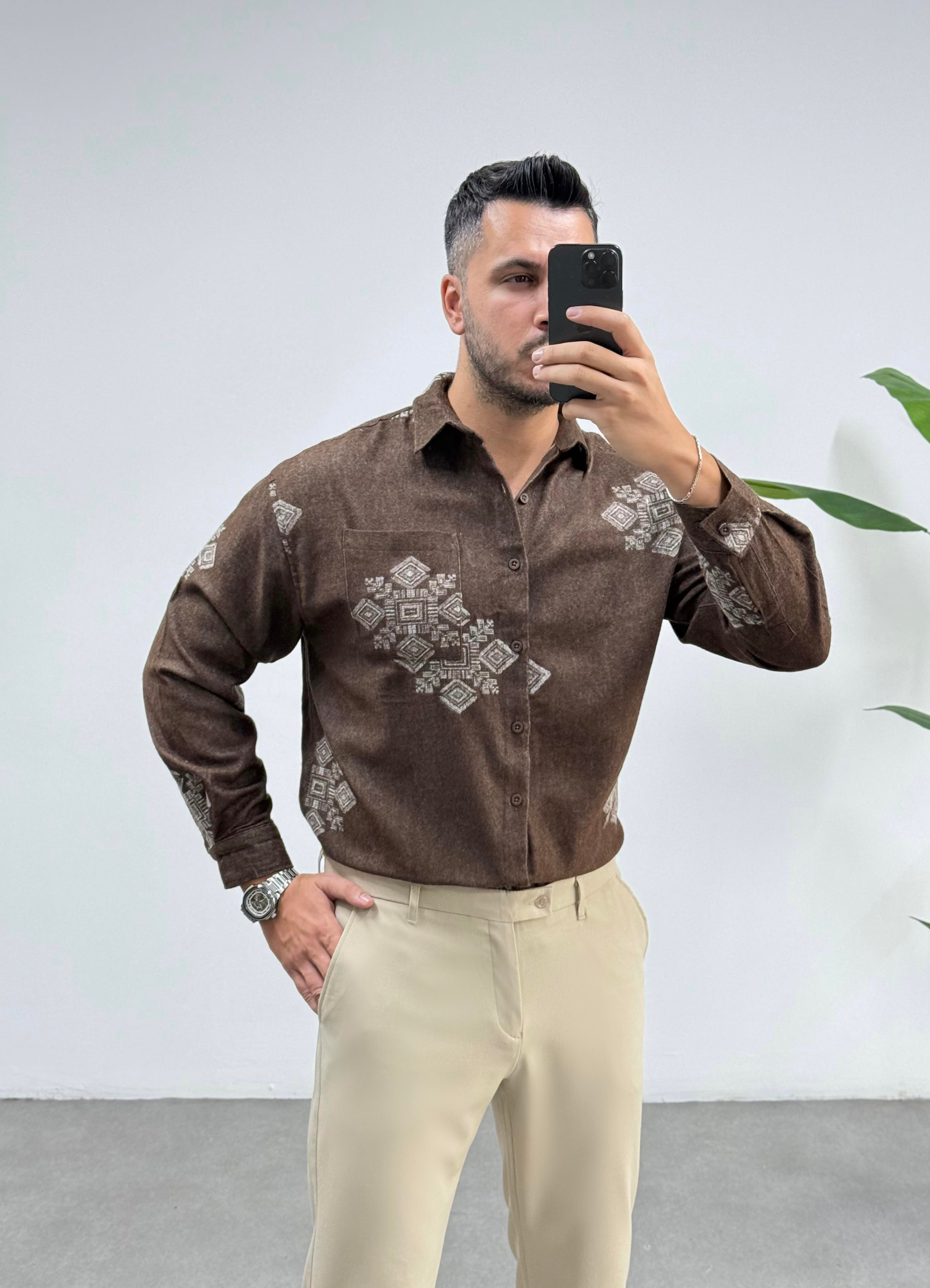 Etnik Kaşmir Kahve Oversize Gömlek (3450M)