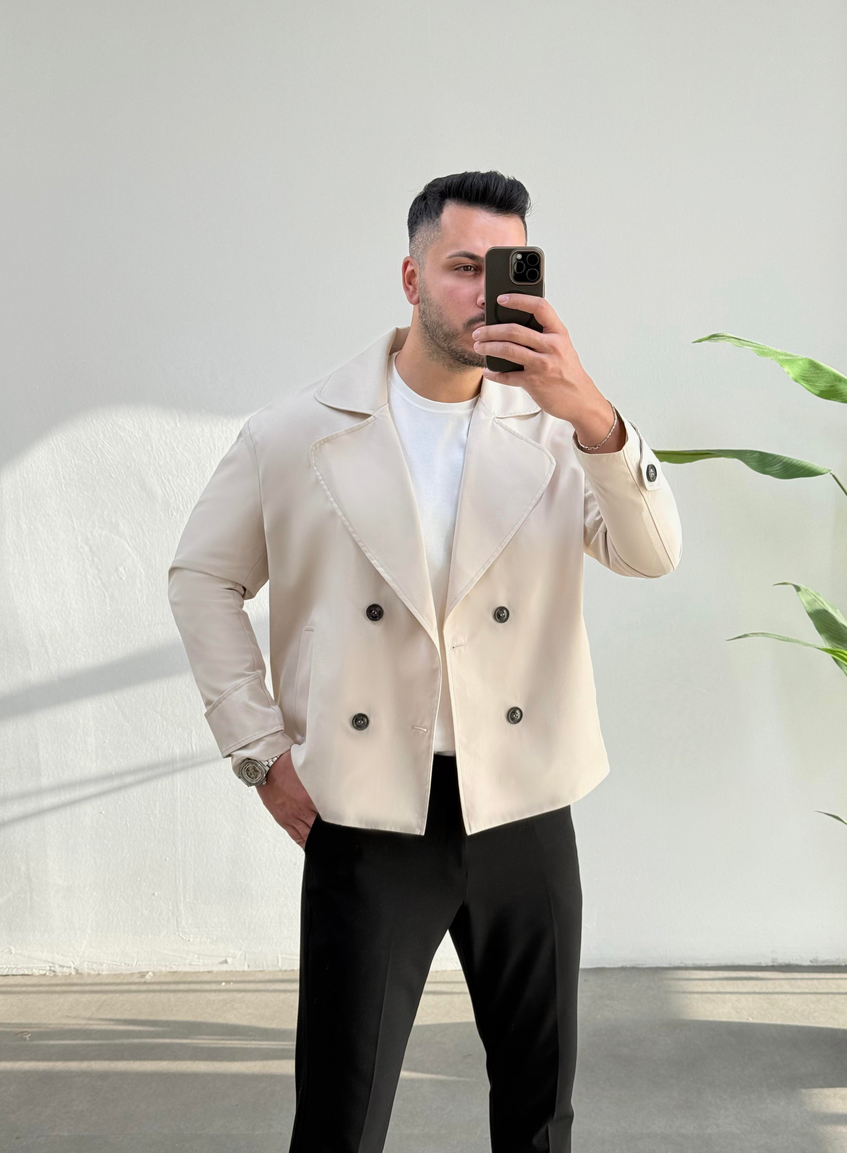 Kruvaze Trenç Ekru Oversize Ceket