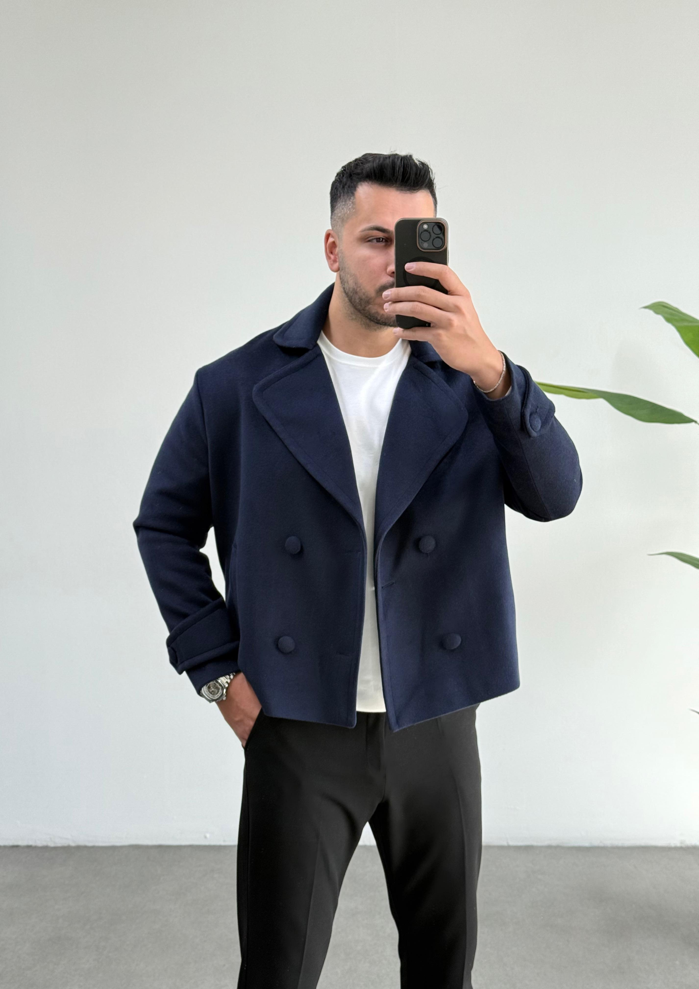 Lux Lacivert Oversize Kaşe Ceket