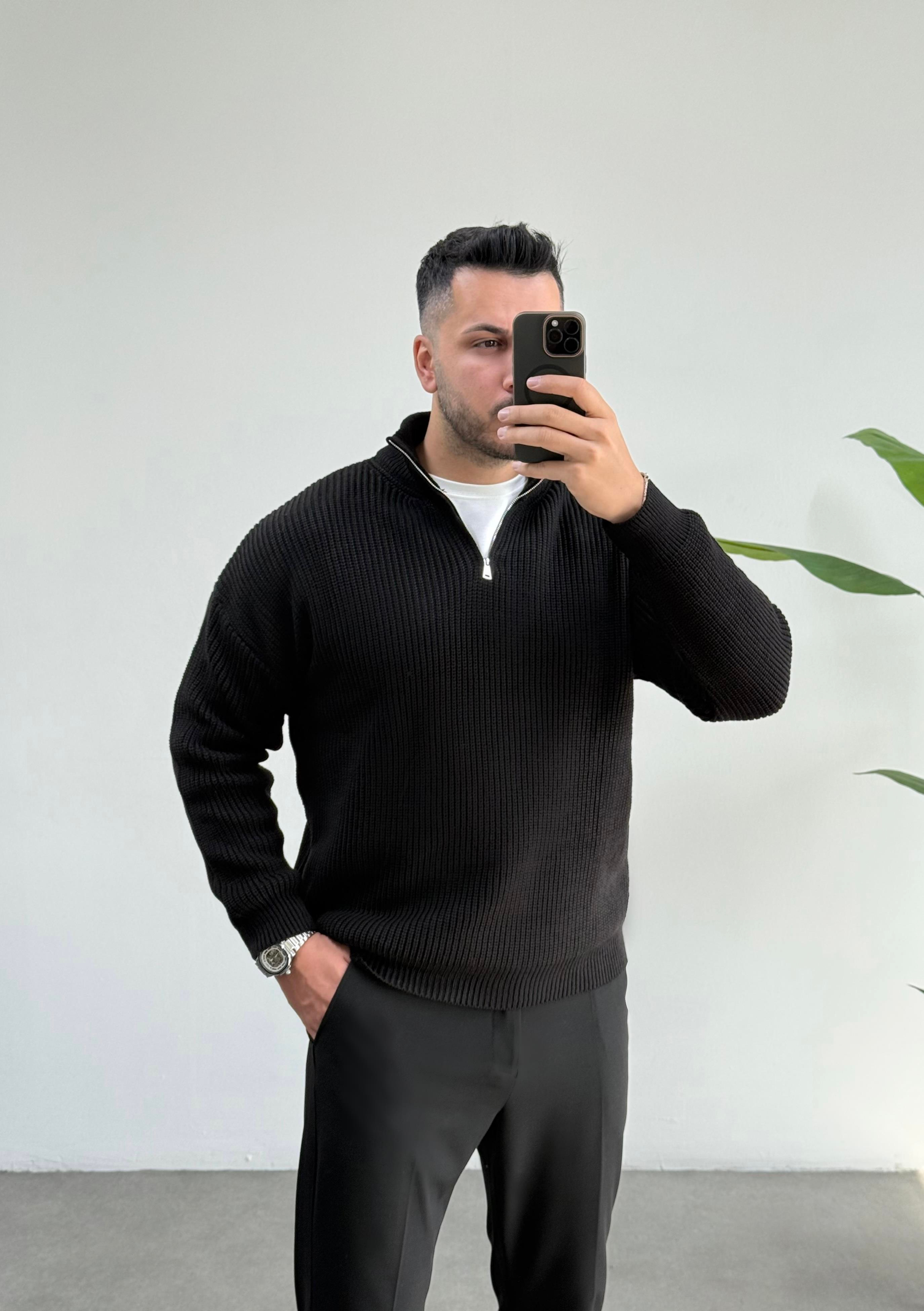 Premium Yarım Fermuarlı Siyah Kazak (3499M)