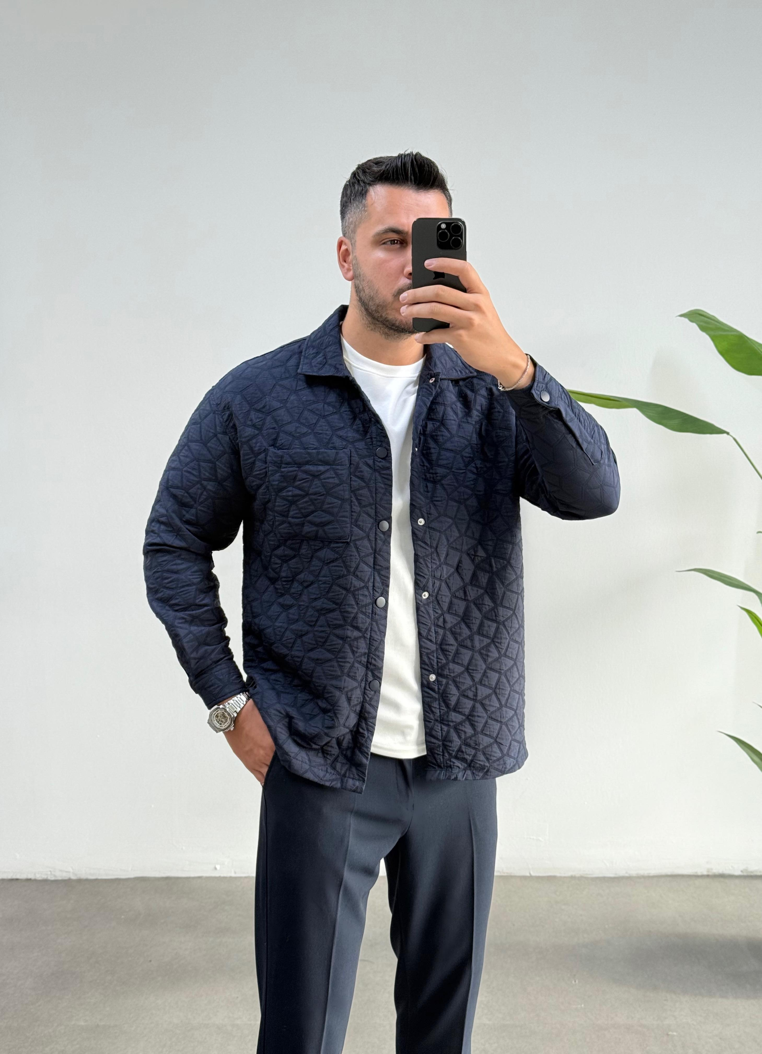 Quzu Kapitone Lacivert Oversize Gömlek (3490M)