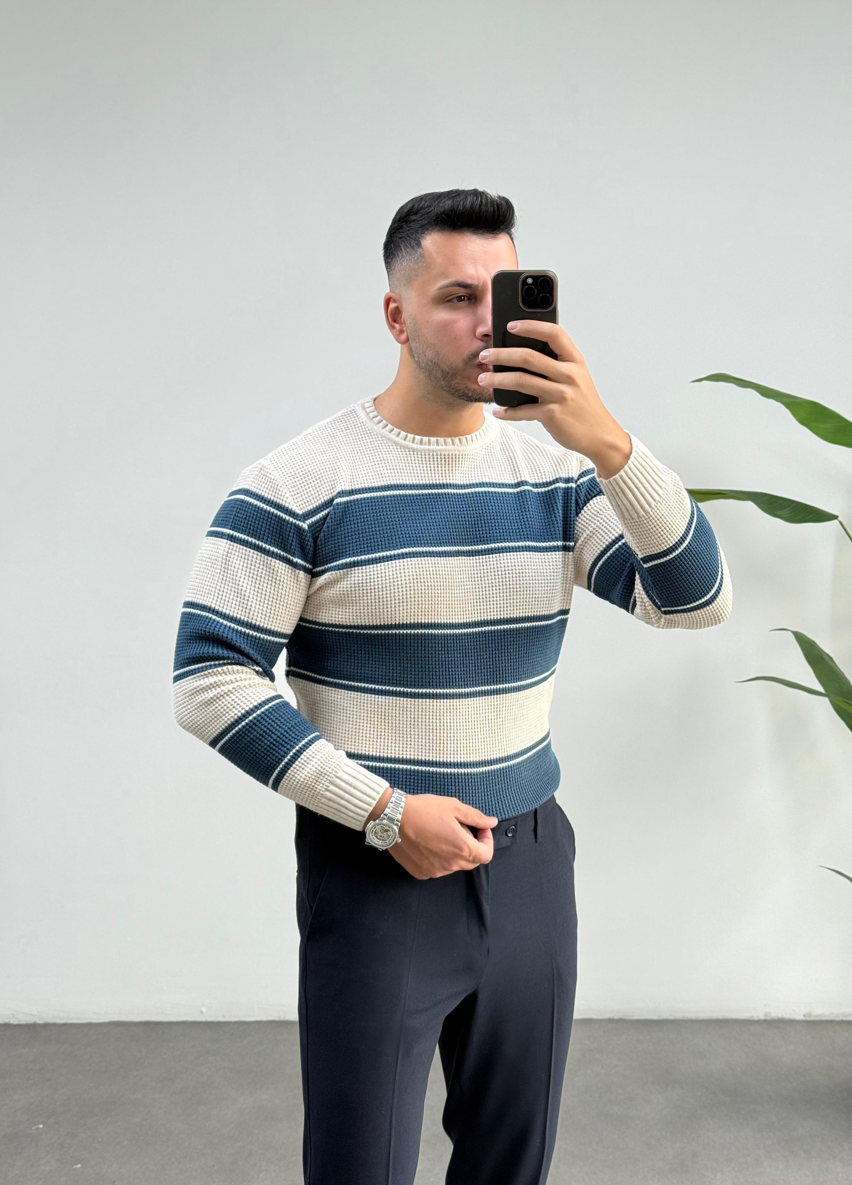 Raiw İndigo Çizgili Örme Kazak (3507J)