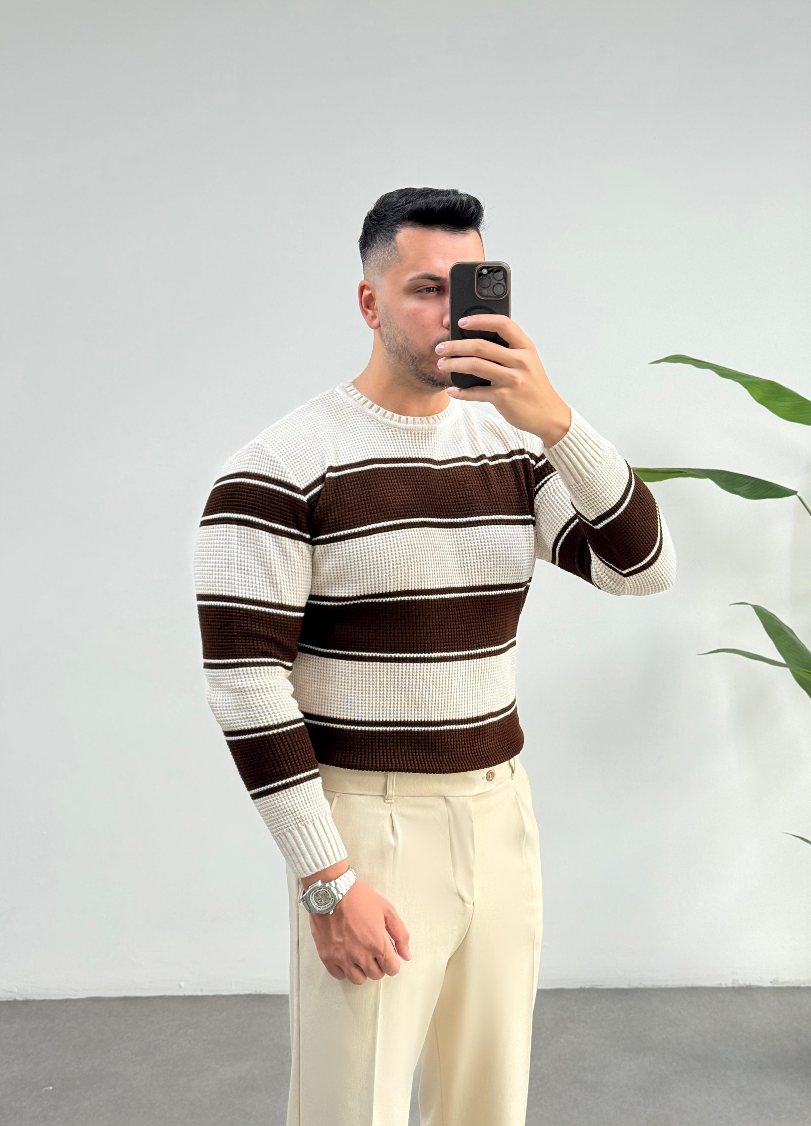 Raiw Kahve Çizgili Örme Kazak (3507J)