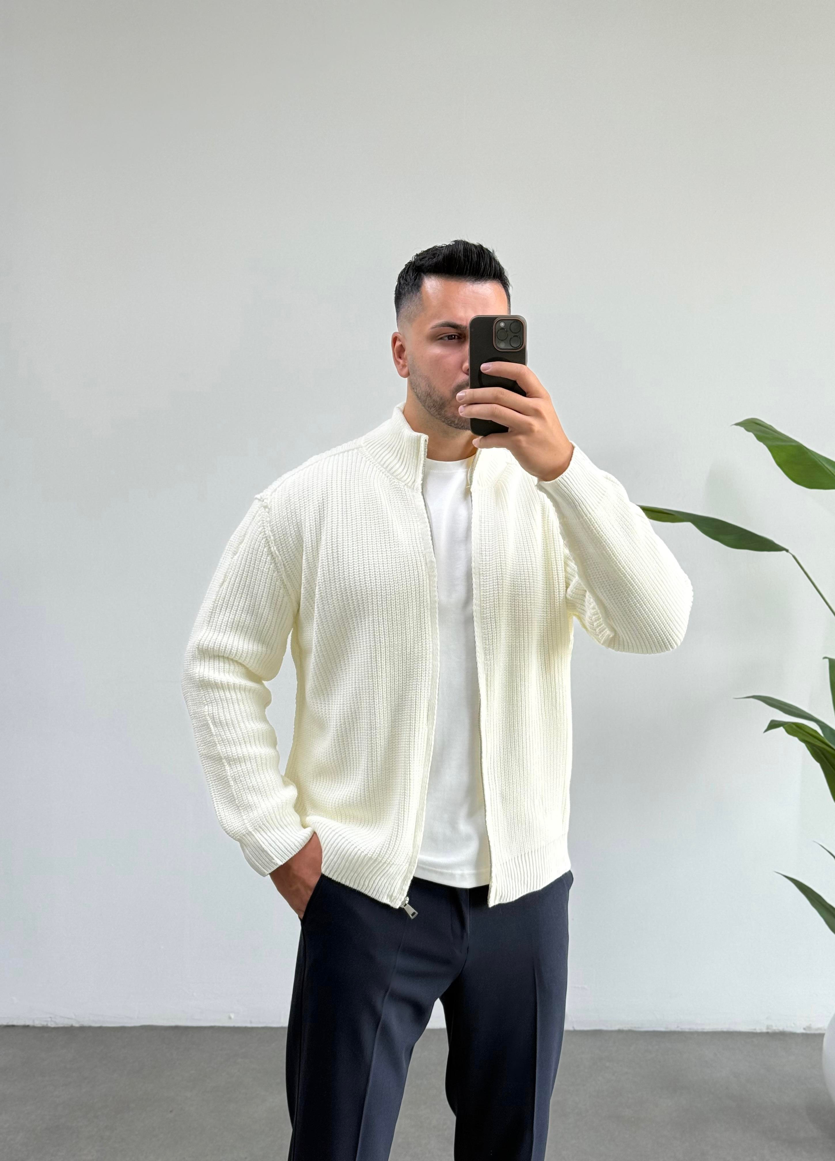 Ters Dikim Ekru Oversize Hırka (3470E)