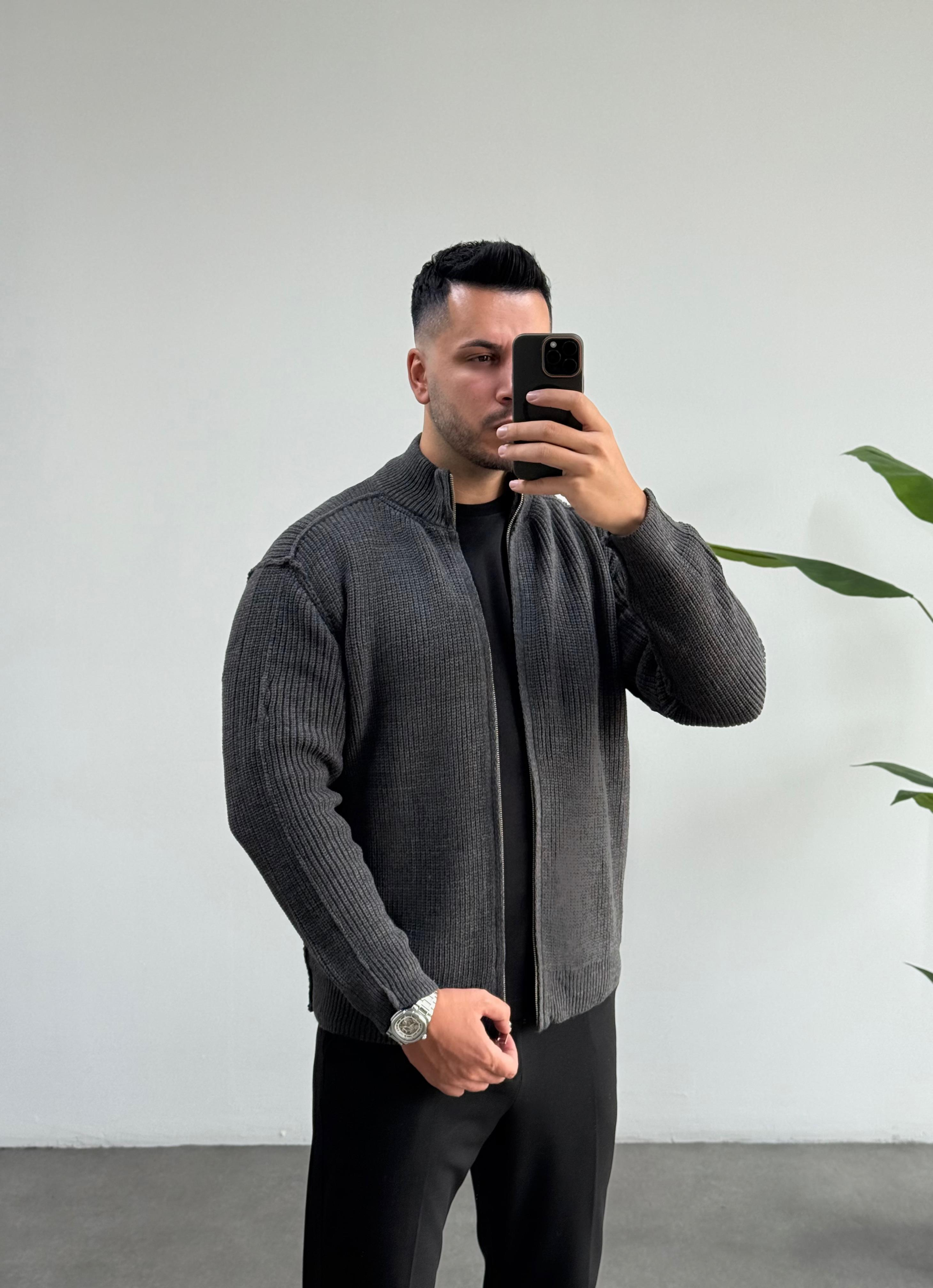 Ters Dikiş Antrasit Oversize Hırka (3470E)