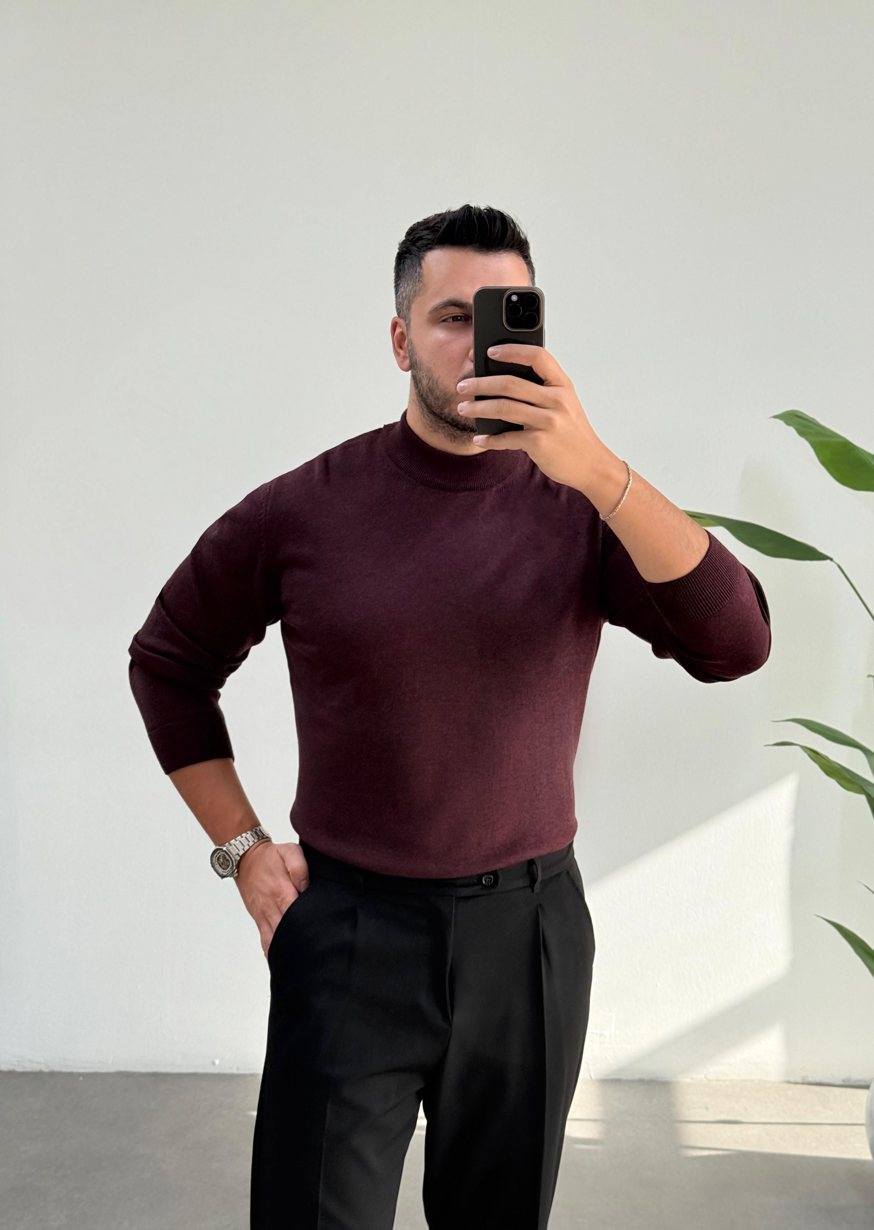 Yarım Balıkçı Bordo Triko Kazak (3505T)