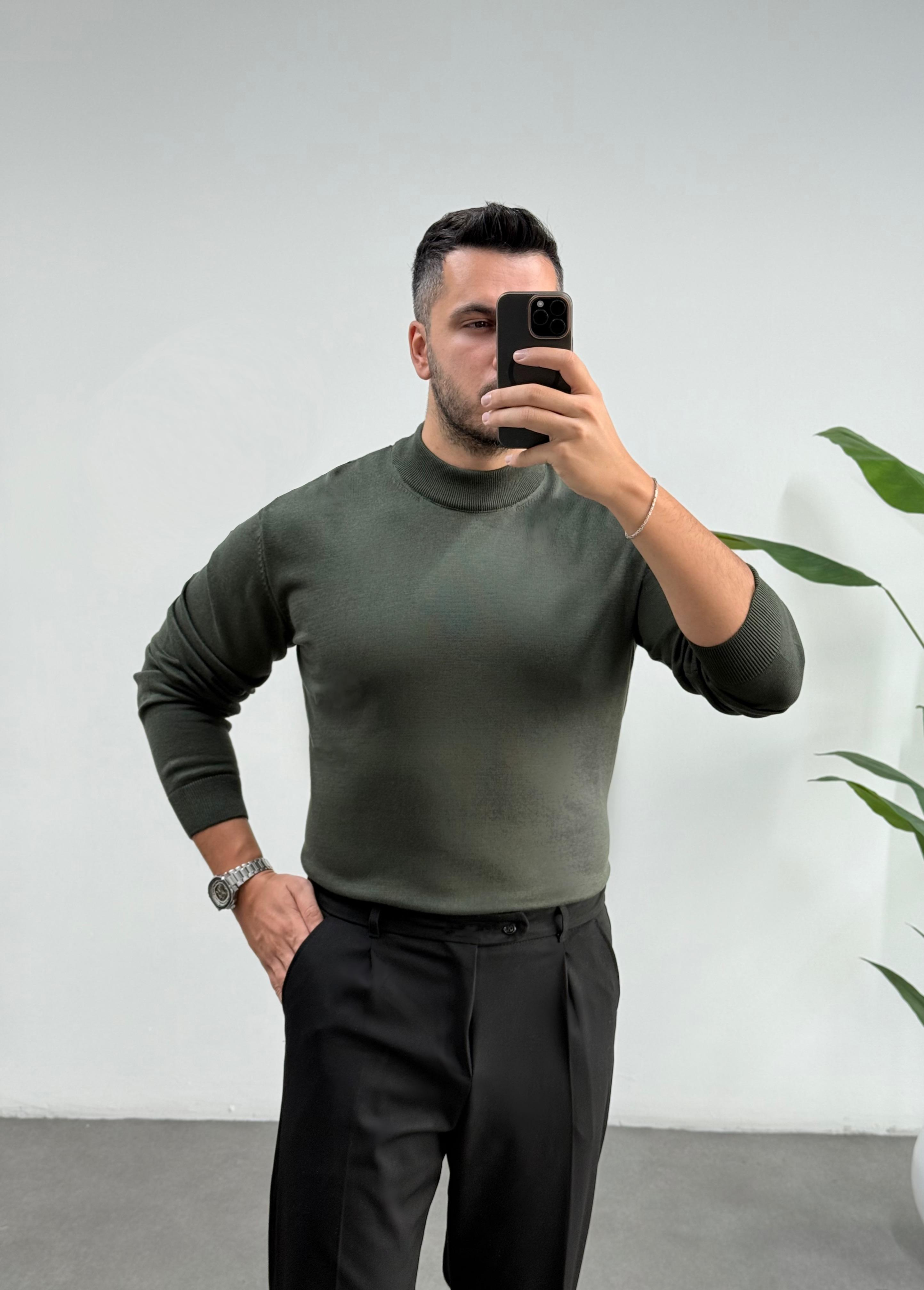 Yarım Balıkçı Haki Triko Kazak (3505T)